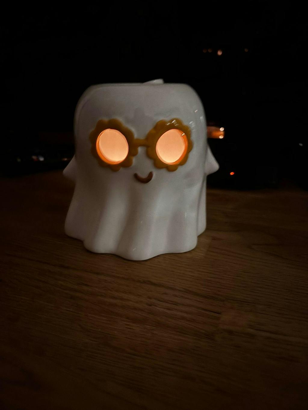 I brought this for my Daughter as she loves ghosts.she is really pleased and in the dark it looks lovely with the light coming through the eyes .